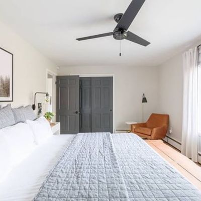 The industrial design comes with reversible blades, so you can choose a soft wood tone for a gentle appearance or a.